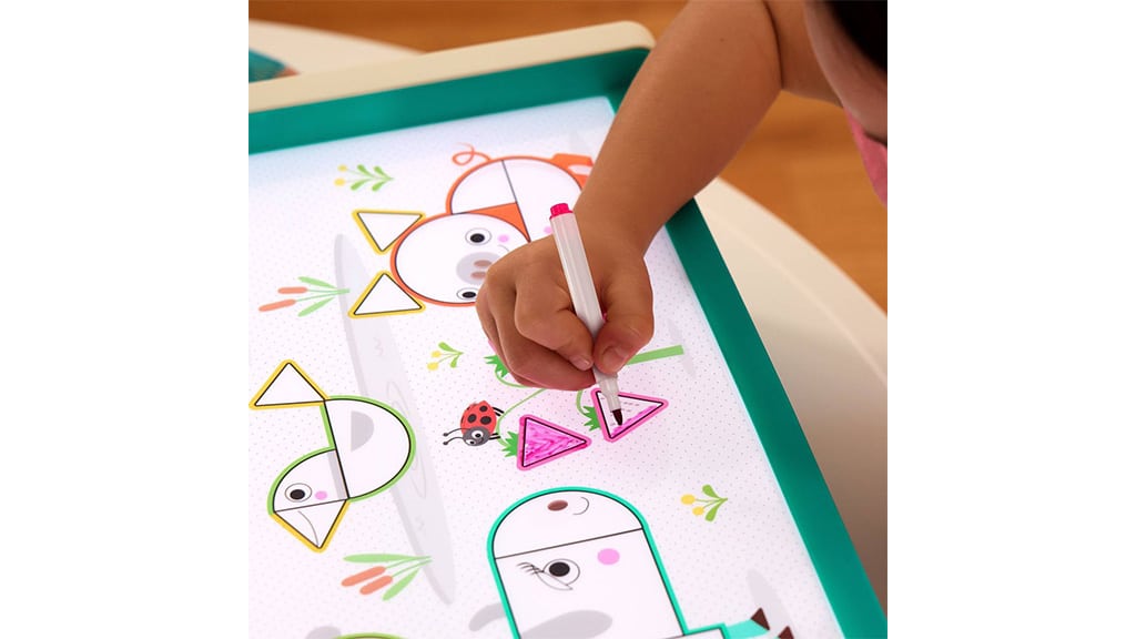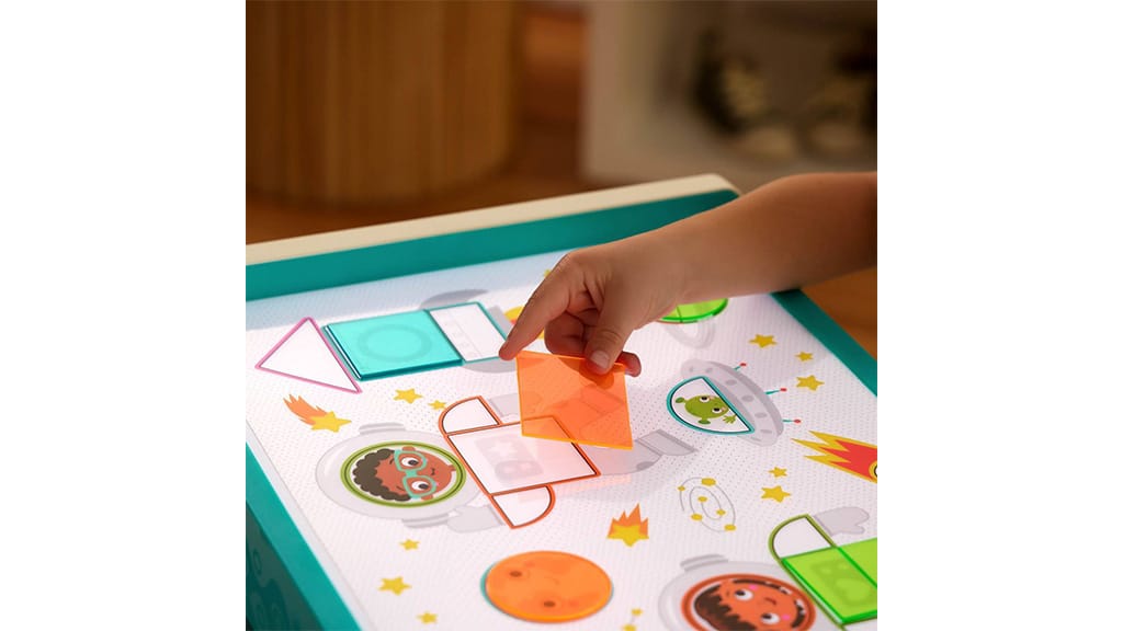 Le famiglie possono incoraggiare i bambini a imparare anche al di fuori della classe con laiuto del Look & Shine Light Box Playset. Questo set da 71 pezzi include più di 60 accessori didattici, tra cui 50 numeri e forme colorate, cinque pennarelli cancellabili a secco con gomma e tre fogli trasparenti intercambiabili. Il dispositivo funziona a batteria o con USB-C e offre cinque colori di illuminazione e due impostazioni di luminosità.