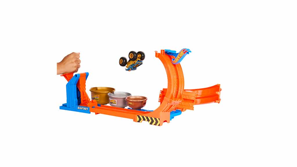 Il Wheels Monster Trucks Loop-and-Flip Trophy Challenge sarà disponibile anche il prossimo mese. Con questo gioco, i bambini possono lanciare il Bigfoot attraverso il loop o eseguire un backflip quando lo smontano. La Trophy Challenge funziona con qualsiasi camion in scala 1:64.Questo gioco non solo è divertente, ma sviluppa anche la creatività e le capacità di risoluzione dei problemi dei bambini. Durante lesecuzione di vari trucchi e sfide, i bambini imparano a combinare diversi elementi per avere successo. La Trophy Challenge è la scelta ideale per tutti i piccoli appassionati di auto che amano le sfide e le acrobazie spettacolari.