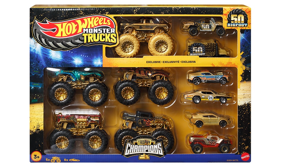 Il Hot Wheels Monster Trucks Trophy Champions Multipack contiene cinque monster truck e tre veicoli esclusivi completamente dorati. Questo pacchetto speciale è stato creato per collezionisti e appassionati che apprezzano veicoli dal design unico e ricchi di dettagli. I monster truck, con le loro ruote massicce e laspetto impressionante, garantiscono unesperienza di gioco emozionante. I veicoli dorati rappresentano unaggiunta speciale a qualsiasi collezione, poiché la loro rarità e unicità li rendono particolarmente preziosi.Il mese prossimo, i bambini potranno godersi il divertimento dellanniversario di Bigfoot anche a casa con laiuto di un modello in metallo pressofuso! Lauto fa parte del Champions Multipack, che ha un costo in dollari e include anche un Baja Truck e un Baja Hauler. Questo pacchetto speciale offre lopportunità ai bambini di giocare in modo creativo e di esplorare il mondo dei diversi veicoli. Il modello Bigfoot può essere particolarmente emozionante per coloro che sono appassionati di veicoli ad alte prestazioni e fuoristrada. Il pacchetto è un regalo perfetto per qualsiasi occasione e garantisce di portare gioia ai più piccoli.