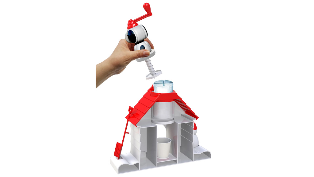 Dopo che le famiglie riempiono e sistemano i portaghiaccio, inseriscono un cubetto (con la X rivolta verso lalto) nella cuccia del cane. Quando il tritaghiaccio di Snoopy viene posizionato sopra, i bambini fissano il corpo di Snoopy ruotandolo in senso orario. I bambini possono girare il tritaghiaccio di Snoopy e osservare mentre riempie il bicchiere rosso riutilizzabile, che è posizionato sotto la cuccia, e poi possono raccogliere i trucioli nei bicchieri di carta. Infine, i bambini possono preparare lo sciroppo versando la bustina al gusto di punch alla frutta in un bicchiere di carta e mescolandola con acqua fino a quando i grumi non si sciolgono, poi versano il tutto nella bottiglia e spruzzano lo sciroppo sul ghiaccio.I bambini possono usare la paletta per trasferire il ghiaccio tritato nei propri bicchieri. Questo è un ottimo modo per permettere a ciascuno di creare la propria granita unica. Con laiuto della paletta, possono facilmente dosare il ghiaccio e rendere il dessert ancora più emozionante con vari aromi. Questa attività non è solo divertente, ma sviluppa anche le "abilità motorie fini" dei bambini. Fonte: Cra-Z-Art