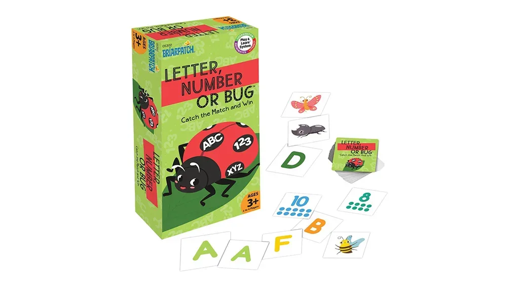 Questo gioco di preparazione scolastica Briarpatch incoraggia il riconoscimento di lettere e numeri tra i giovani studenti. I giocatori saltano e gareggiano nellidentificazione di lettere, numeri e insetti.I bambini cercano tessere corrispondenti con numeri, lettere e piccoli insetti nel gioco Lettera, Numero o Insetto. Lobiettivo del gioco è aiutare a stabilire le basi per il riconoscimento di lettere e numeri, mentre i bambini cercano attivamente le tessere e cercano di ricordare la posizione di quelle che hanno già visto.