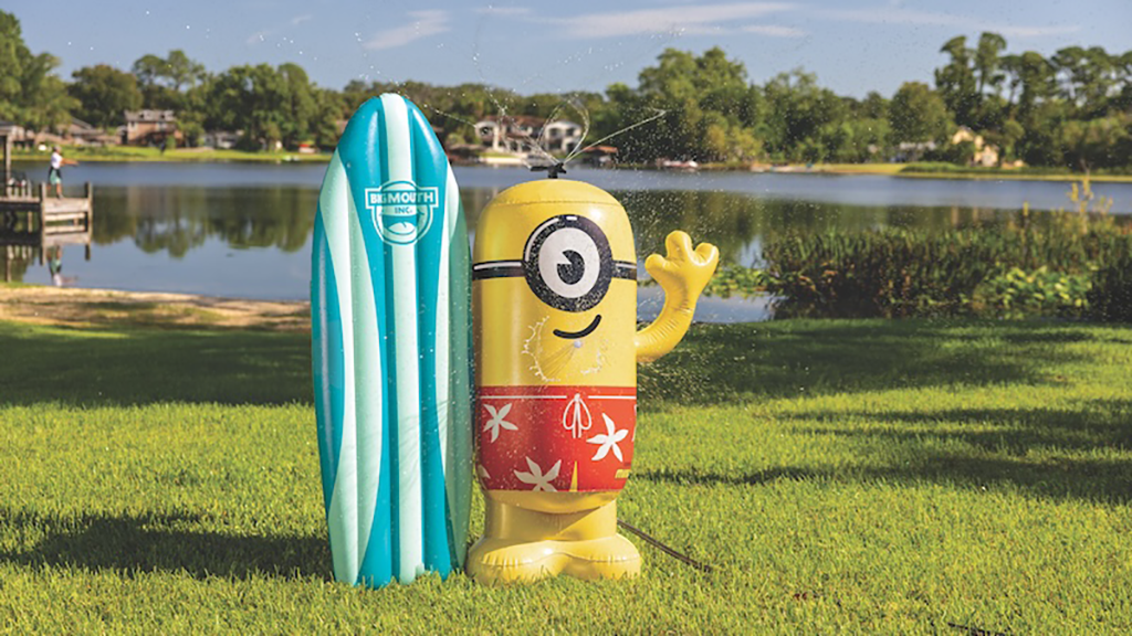 Collega questo irrigatore ispirato ai Minion a un tubo da giardino standard per ottenere uno spruzzo dacqua rotante a 360 gradi e altri due punti di spruzzo. Il Minion alto 4,5 piedi è leggero e facile da trasportare.