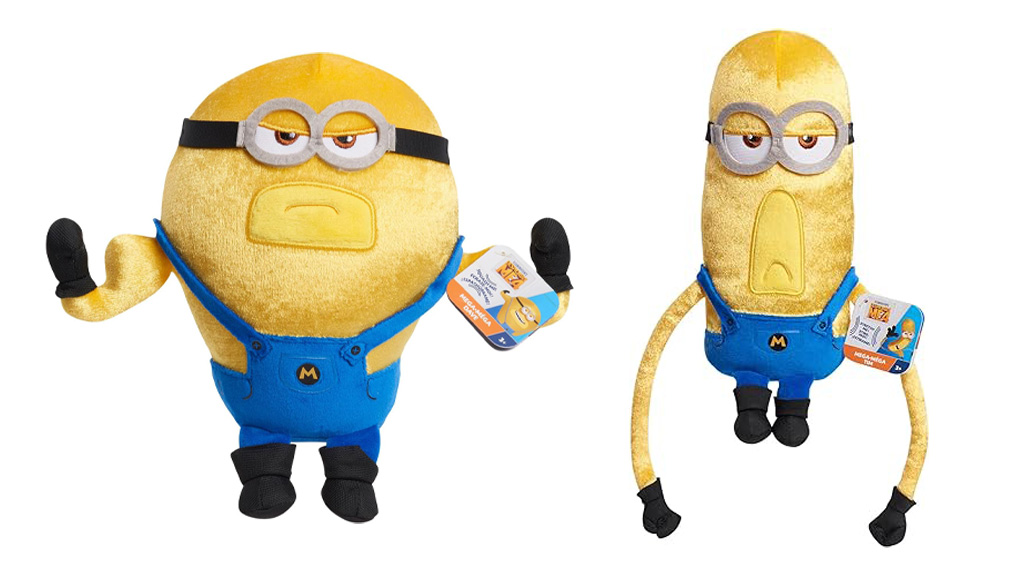 Abbraccia, stringi, comprimi e coccola i peluche Squooshy Minions! Ci sono quattro minion, ognuno con un diverso meccanismo fidget: Mega Dave con schiuma lenta, Mega Gus con cuscino daria, Mega Tim con fagioli e braccia allungabili, e Mega Jerry con pellet rumorosi e fagioli.