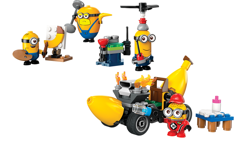 Un peluche da 13 pollici contiene circa 2 libbre di pellet per un comfort ponderato ed è realizzato in materiale morbido. Questo peluche è una scelta perfetta per chi ama i giocattoli comodi e rilassanti. La combinazione di materiale morbido e imbottitura ponderata è particolarmente adatta per alleviare lo stress e favorire un sonno riposante. Il peluche può essere un regalo ideale sia per bambini che per adulti che apprezzano i giocattoli di qualità e confortevoli.I fan dei Minions possono costruire questo set di gioco ispirato a Gru 4, realizzato da Illumination. Il set include quattro minion, unauto a banana con motore fiammeggiante e accessori.