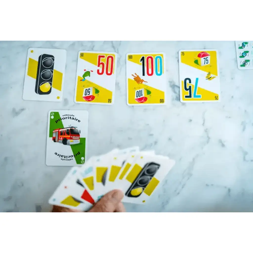 Il gioco si svolge con delle carte, che permettono di avanzare lungo la strada, difenderti dagli attacchi o ostacolare a tua volta lavanzata degli altri. In questo gioco che combina strategia e fortuna, è fondamentale prendere le decisioni giuste al momento giusto. Sul tabellone colorato, le auto dei giocatori si spostano fisicamente in avanti, così anche i più piccoli possono seguire facilmente l’andamento della corsa.