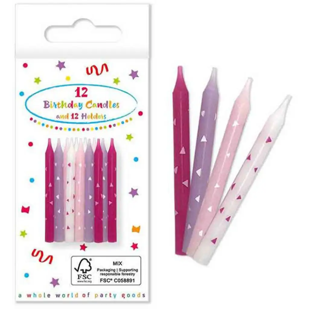 Rendi davvero memorabile il taglio della torta di compleanno con queste affascinanti e allegre candele rosa, che non solo sono decorative, ma si adattano perfettamente a qualsiasi celebrazione elegante e femminile! Il set da 12 pezzi include candele in diverse sfumature - dal rosa scuro al pastello chiaro - offrendo così una visione armoniosa e accattivante sulla torta. I giocosi motivi a triangolo bianco le rendono ancora più speciali, abbinandosi particolarmente bene a decorazioni a tema unicorno, fata, principessa o anche lilla-rosa.