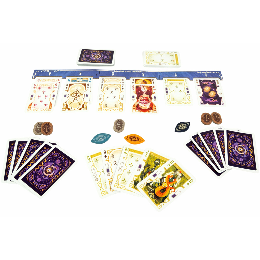 Durante il gioco ogni giocatore riceve delle carte e, ad ogni turno, decide se giocare, passare o rischiare. Bisogna dedurre la strategia degli altri in base alle carte sul tavolo comune. I gettoni servono per puntare o alzare la posta, mantenendo così una tensione costante. Vince chi legge meglio gli avversari e accumula il maggior numero di punti alla fine dei round.
