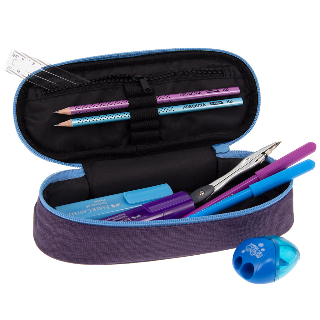 Allinterno dellastuccio ci sono fermagli elastici e una tasca interna con cerniera, così anche gli oggetti più piccoli non si perdono. Grazie alla sua capienza, tutti gli articoli di cancelleria importanti trovano comodamente spazio, rendendolo una scelta ideale per luso scolastico quotidiano. Realizzato in materiale resistente che sopporta luso quotidiano.