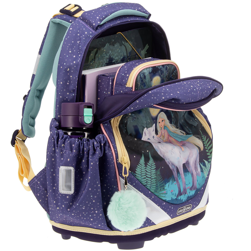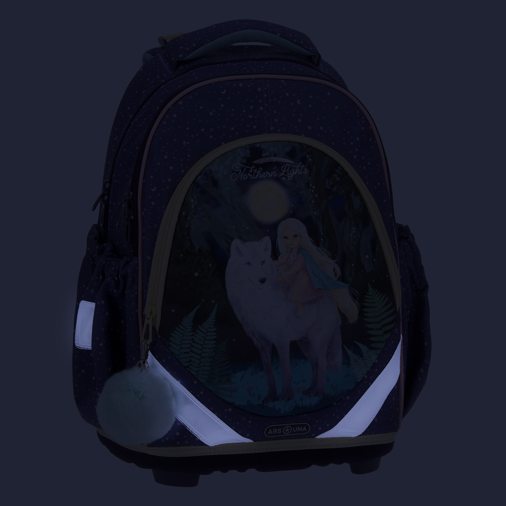 Lo zaino scolastico anatomico Ars Una Northern Lights è la scelta perfetta se cerchi uno zaino leggero, ma pratico e di grande impatto per il tuo bambino nei primi anni della scuola primaria. Consigliato specificamente per alunni dalla 1ª alla 3ª classe, il suo design è pensato per adattarsi alle esigenze dei più piccoli. La fantasia speciale e fiabesca – la bambina alla luce della luna e il lupo bianco – conferisce un aspetto davvero unico che i bambini adoreranno.