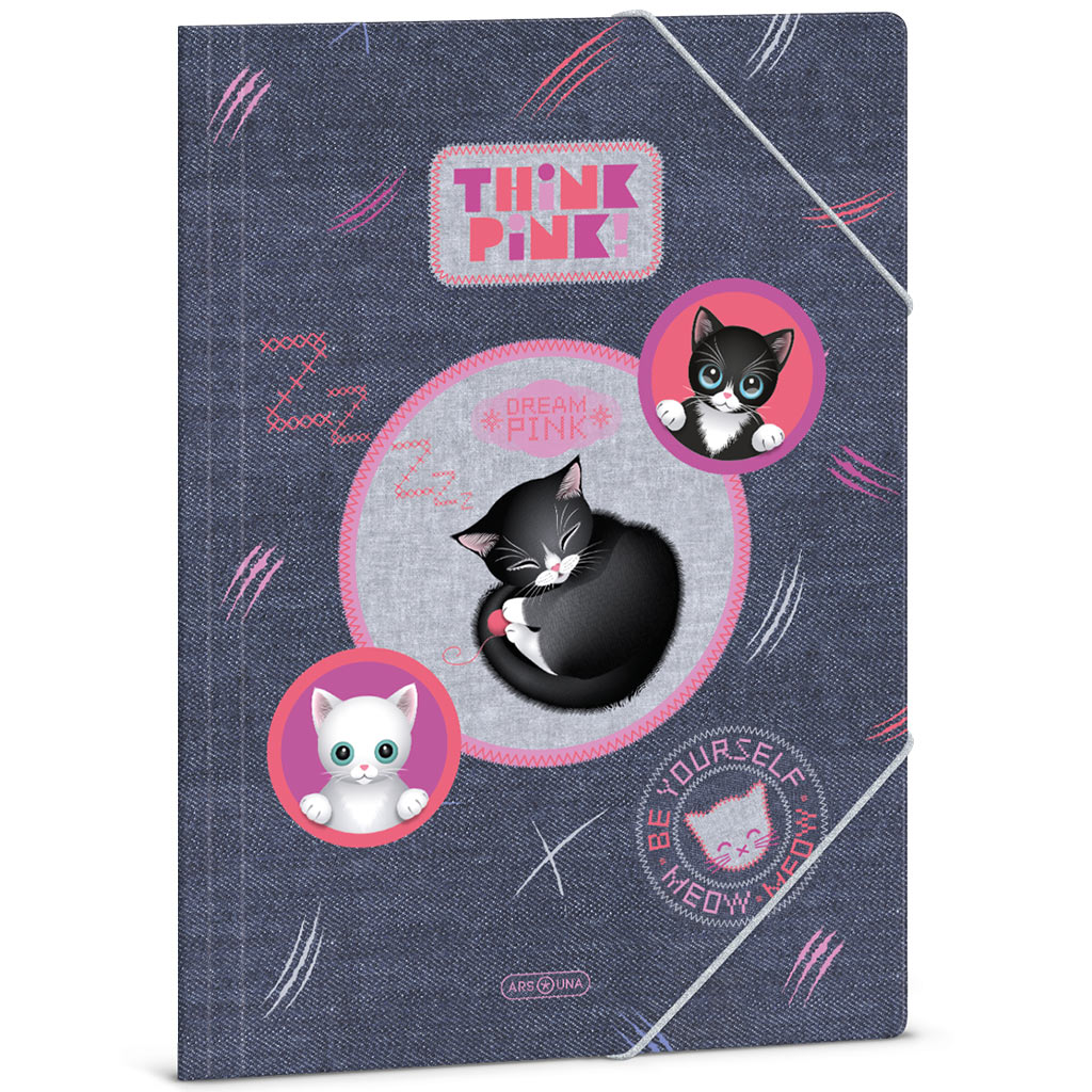 Ars Una: Think Pink cartellina con elastico, carina con motivo di gatti, formato A4