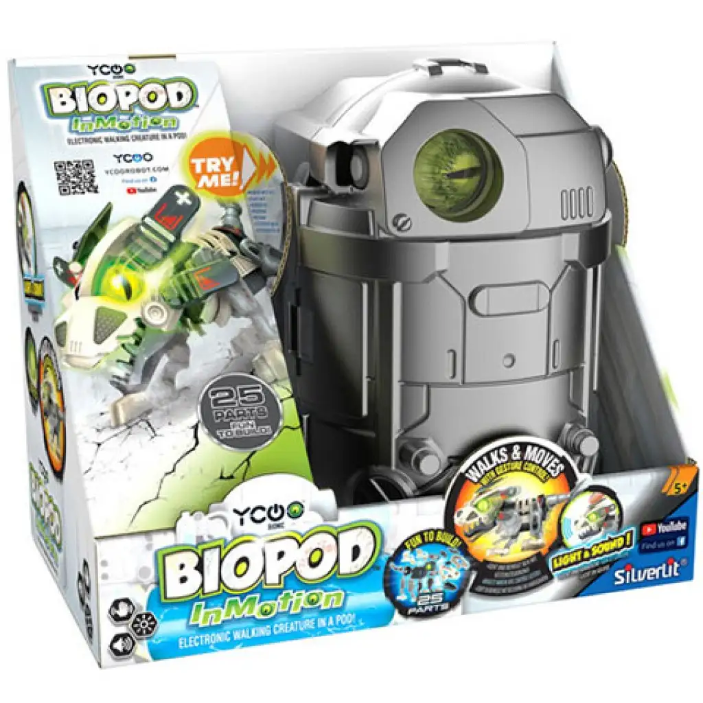 Le capsule BIOPOD nascondono sorprese emozionanti per i bambini, poiché nel profondo della capsula dagli occhi luminosi li attende un grande e mobile dinosauro che possono assemblare e creare come la loro figura interattiva di dinosauro, dotata di vari effetti di luce e suono! Questo Mega Biopod Dino ha caratteristiche davvero uniche! La capsula contiene più di venticinque pezzi che, una volta assemblati, formano un grande dinosauro. Il Biopod Dino camminerà al tocco, la sua coda si muoverà ritmicamente, aprirà la bocca emettendo suoni ruggenti mentre i suoi occhi spettacolari brilleranno di verde! Per rendere il dinosauro ancora più unico, può essere decorato con adesivi.