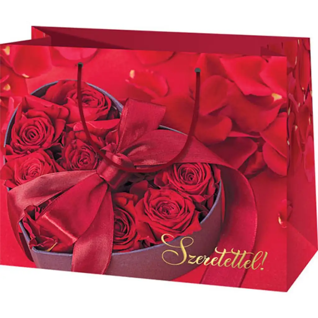 Borsa regalo esclusiva di medie dimensioni con motivo di rose rosse 18x10x23cmBorsa regalo esclusiva di medie dimensioni con motivo di rose rosse 18x10x23cm