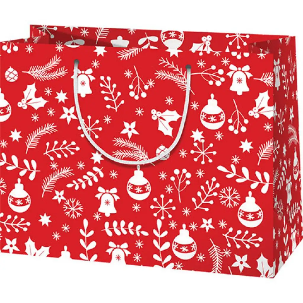 Borsa regalo natalizia di medie dimensioni rosso-bianca 18x10x23 cm