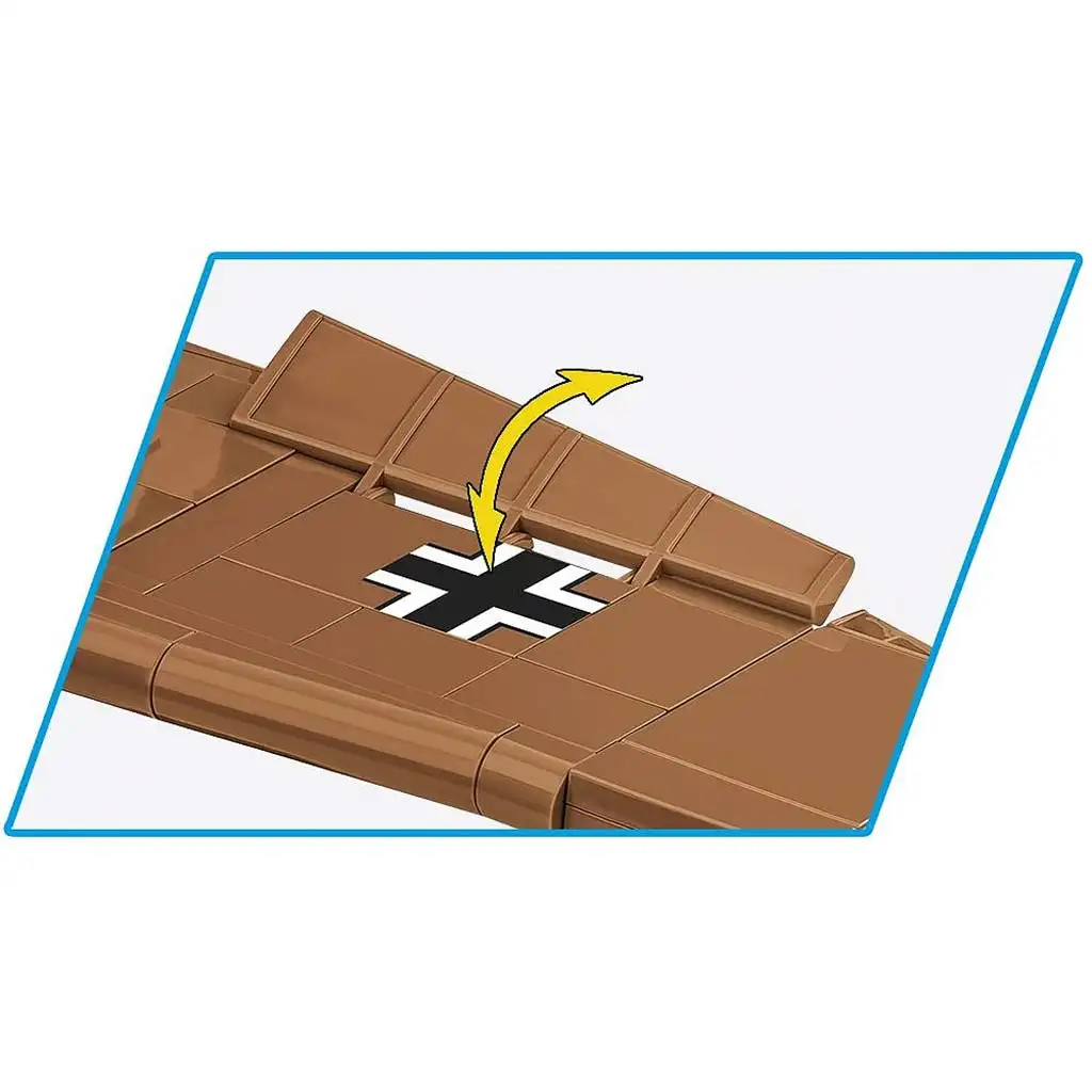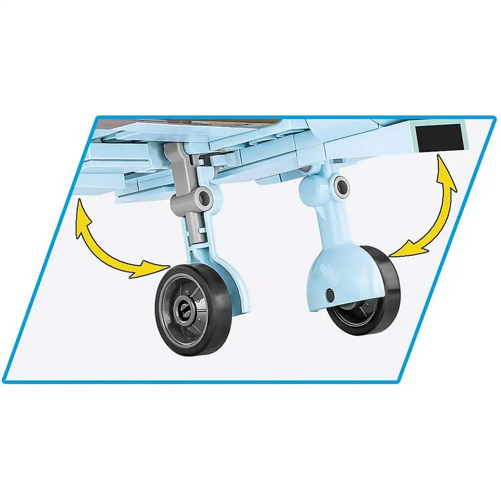 Il modello dispone di numerose funzioni mobili: elica girevole, superfici di controllo mobili e carrelli d’atterraggio retrattili, oltre a una cabina di pilotaggio apribile dove può essere inserita la minifigura del pilota inclusa. L’intera superficie dell’aereo è ricoperta da stampe di alta qualità che non si usurano né scoloriscono, eliminando la necessità di adesivi. Il velivolo presenta la colorazione tropicale dell’epoca, e tutti i suoi elementi riflettono fedelmente i dettagli storici. Il modello è inoltre dotato di un espositore e una targhetta stampata, rendendolo perfetto sia per il gioco che per l’esposizione.