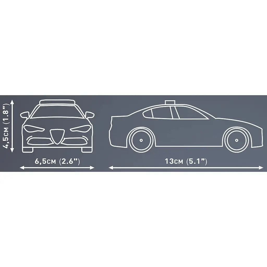 Il set da costruzione COBI Alfa Romeo Giulia Quadrifoglio auto della polizia è una versione speciale della iconica berlina sportiva che spicca anche nella flotta della polizia italiana. Il modello riproduce fedelmente lo stile Alfa Romeo “Quadrifoglio” – combina il simbolo del quadrifoglio con gli elementi di design ufficiali dell’auto della polizia, conferendo così un carattere unico alla forma originale.