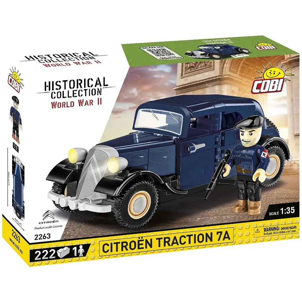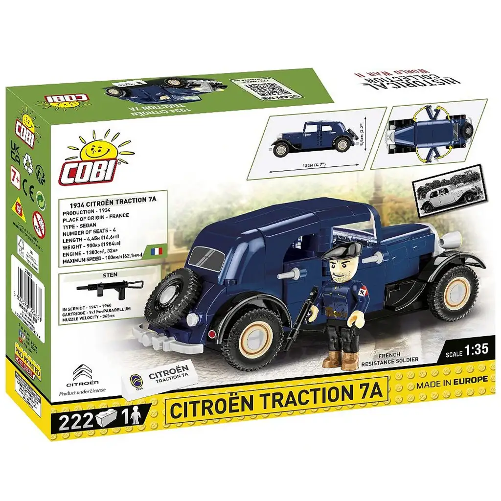 L’iconica Citroën Traction 7A del 1934 si affermò come pioniera delle automobili a trazione anteriore in Europa. La prima serie fu prodotta con un motore poco potente e rimase in produzione solo per tre mesi (da aprile a luglio 1934), il che la rende oggi una vera rarità tra i collezionisti. Il set COBI è composto da 222 mattoncini costruibili in scala 1:35, realizzato su licenza ufficiale Citroën. Il modello include anche una minifigura di un combattente della Resistenza francese, con un bracciale identificativo e dotato di mitra STEN. I dettagli accurati, le decorazioni stampate e le forme autentiche rendono questo set da costruzione davvero speciale.