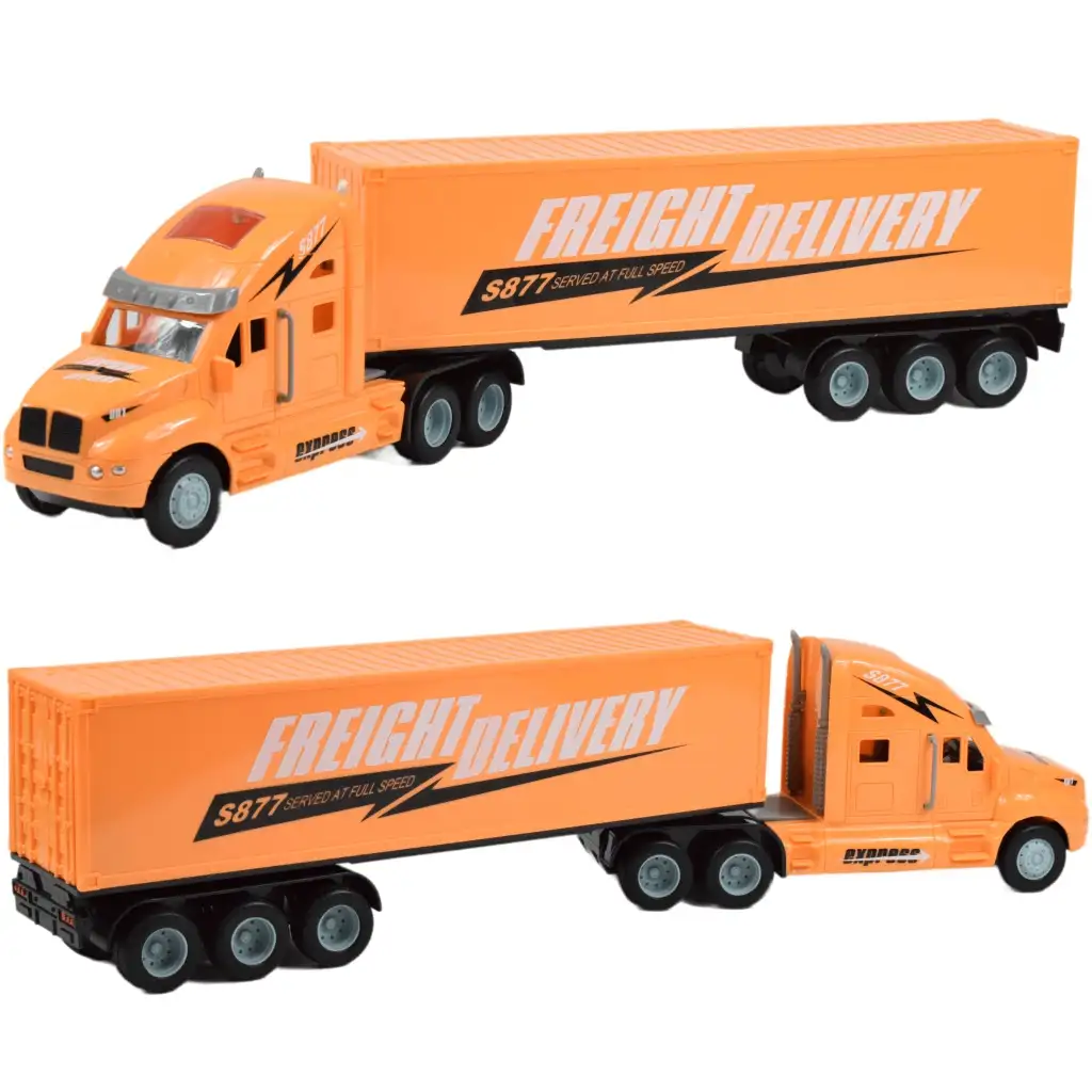 I camion americani con il muso, noti anche come "semi" o "big-rig", sono simboli iconici del trasporto stradale americano. Questi imponenti veicoli attirano lattenzione con le loro dimensioni enormi e i potenti motori. I camion con il muso sono estremamente versatili e vengono utilizzati in numerosi settori. Questo fantastico camion con telecomando assomiglia incredibilmente ai veri camion americani, grazie alla sua dettagliata e realistica lavorazione. Il rimorchio del camion è un container chiuso con porte posteriori apribili, permettendo di caricare piccoli oggetti durante il gioco. Il convoglio lungo 55 cm, a trazione a due ruote, è controllabile in tutte le direzioni con il telecomando a 2.4GHz. La confezione include una batteria da 4.8V 300mAh e un caricatore USB necessari per il funzionamento del camion, mentre le 2 batterie AA da 1.5V per il telecomando sono vendute separatamente.