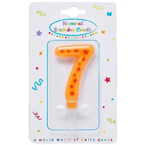 Rendi la festa di compleanno ancora più colorata e festosa, dove potrai utilizzare perfettamente anche questa candela numerica colorata. La candela numero 7 di colore giallo, decorata con stelle, è perfetta per il settimo compleanno dei piccoli. La candela di cera è dotata di stoppino e base in plastica, la cui estremità appuntita può essere facilmente inserita nella parte superiore della torta. Rendi il compleanno memorabile per il festeggiato!