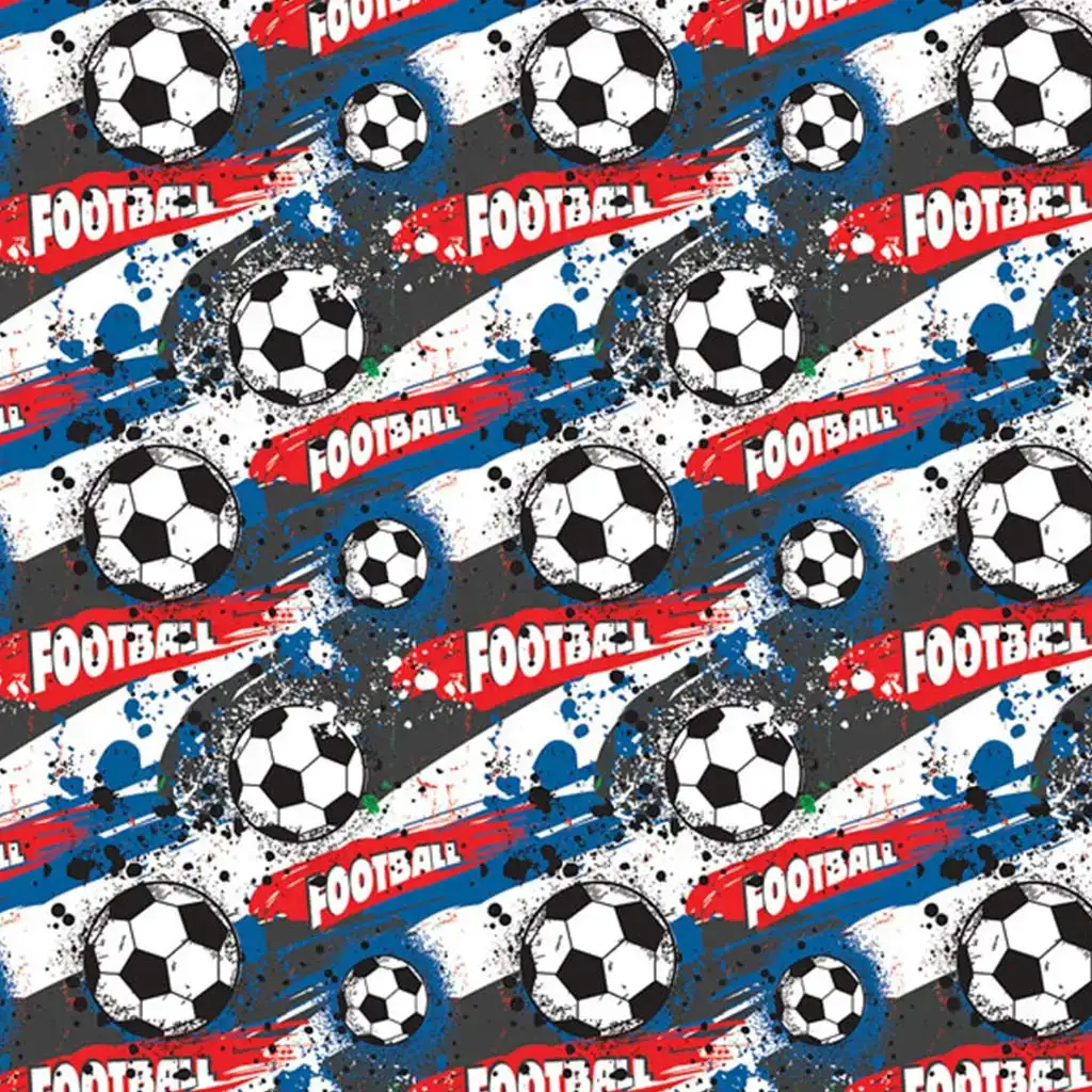 Se tuo figlio è un vero appassionato di calcio, questa carta da regalo con motivo a palloni da calcio sarà la scelta perfetta per lui! La carta, delle dimensioni di 100x70 cm, con i suoi colori vivaci e il design audace, darà sicuramente un tocco speciale a qualsiasi regalo. Il motivo dinamico, ricco di palloni da calcio, effetti spray e la scritta "FOOTBALL", dona un aspetto davvero sportivo ed energico al pacchetto regalo.