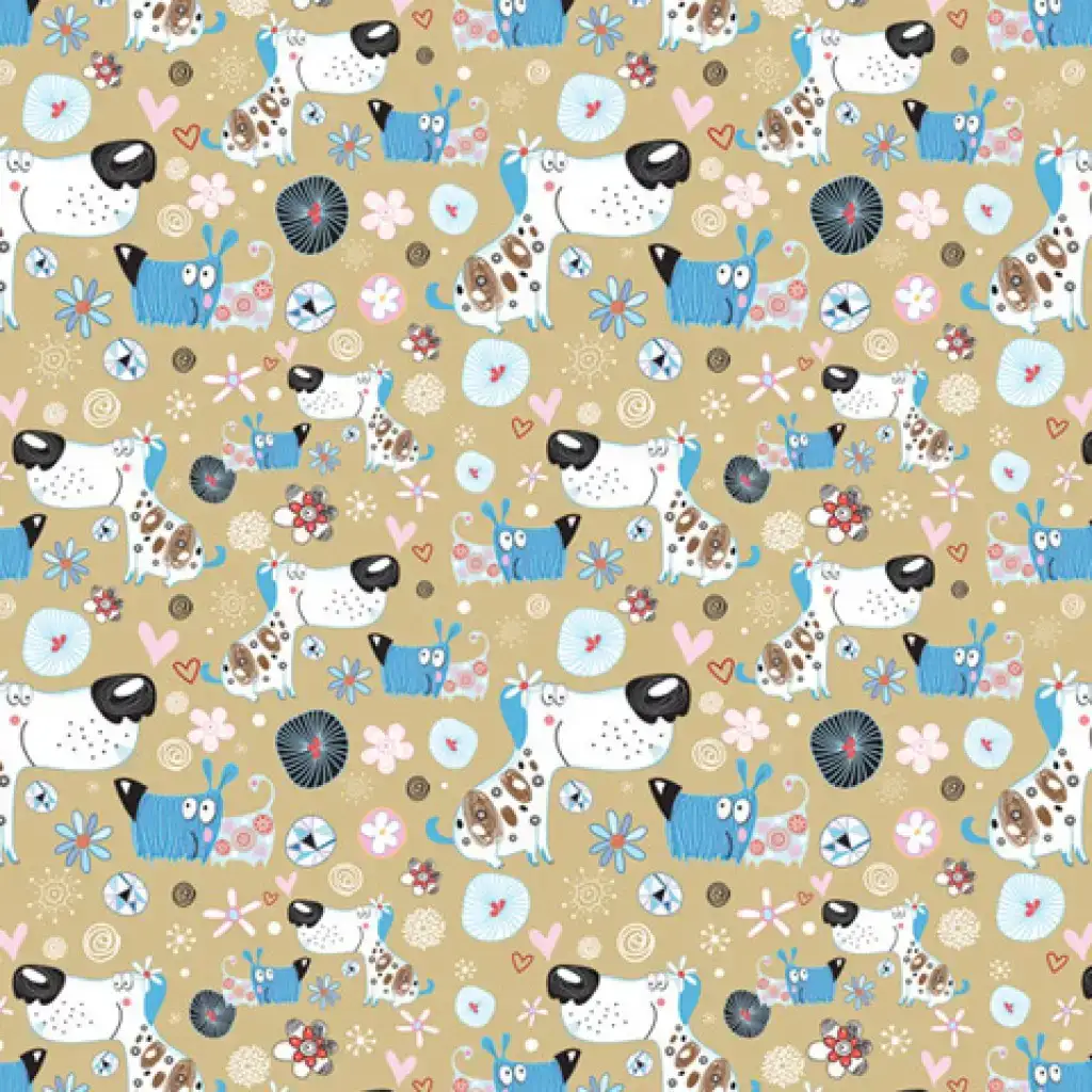 Carta da regalo con cagnolini in colori pastello 100x70 cm