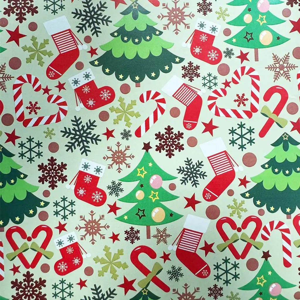 Rendi festosa la confezione con la carta da regalo “Jolly Tree” decorata con alberi di Natale, che con i suoi motivi allegri farà subito comparire un sorriso sul volto di tutti! Il design, che richiama la classica atmosfera natalizia, mette al centro alberi di Natale verdi, circondati da decorazioni colorate, stelle e fiocchi di neve. Il motivo include anche calzini rossi, bastoncini di zucchero, cuoricini e sfere regalo per rendere ancora più festoso l’aspetto.