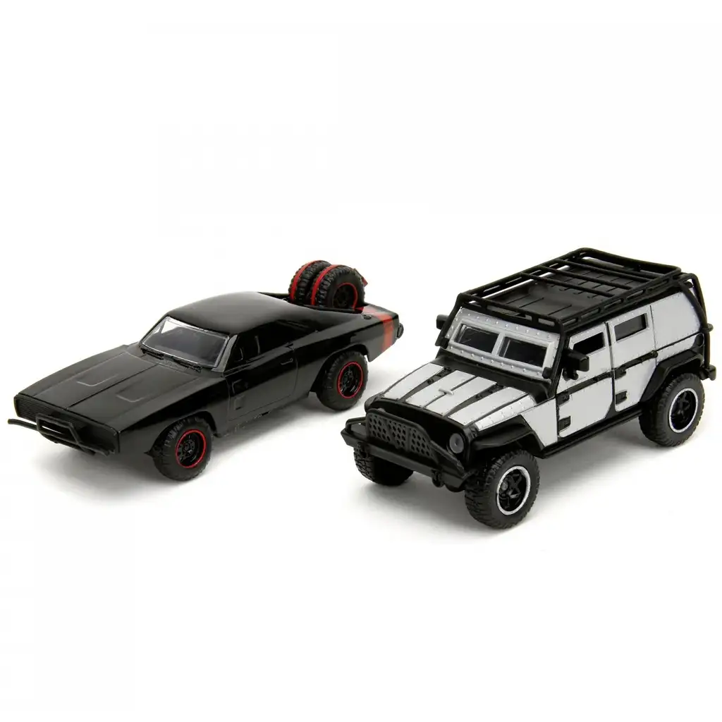 Preparati per una vera scarica di adrenalina, perché è arrivato il nuovo preferito dei fan di Fast & Furious! Il set di modellini in metallo Dom’s Dodge Charger R/T e Tej’s Jeep Wrangler non è solo spettacolare, ma anche resistente, garantendo così un divertimento fantasioso e duraturo per i piccoli piloti. Questi due veicoli iconici arrivano ora in scala 1:32, con dettagli accurati e una solida carrozzeria in metallo, portando il mondo dei film direttamente nella cameretta dei bambini.