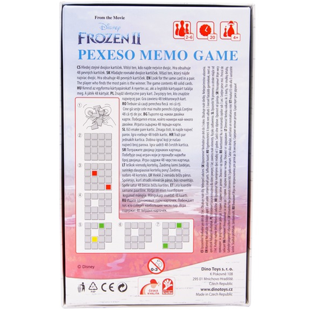Il gioco di memoria di Frozen II è un gioco dallatmosfera magica, divertente e educativo che porta il mondo della popolare fiaba Disney ai bambini. Sulle carte compaiono i personaggi noti – per esempio Elsa, Anna e i loro amici – rendendo il gioco ancora più piacevole per i fan.