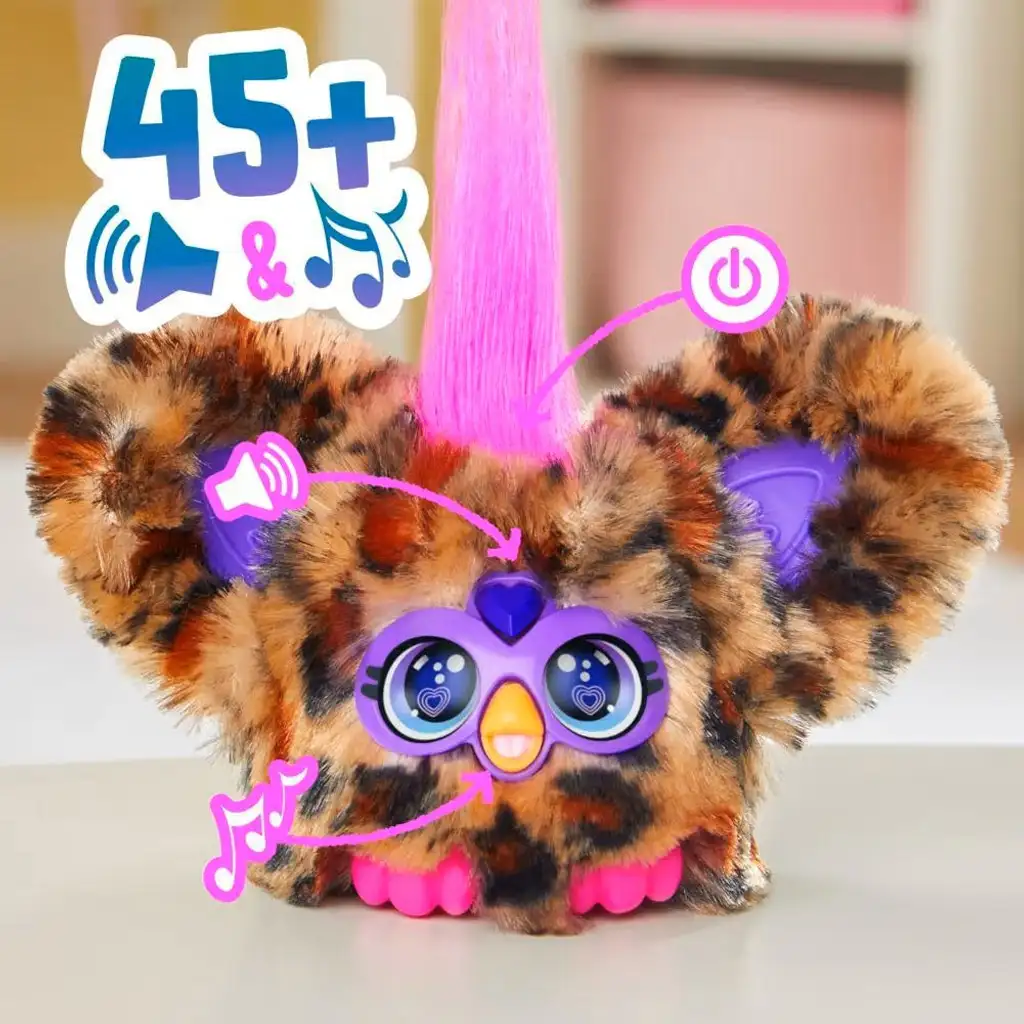 Se cerchi un piccolo amico davvero alla moda e stiloso per il tuo bambino, Chee-Chee è la scelta perfetta! Uno dei pezzi più speciali della serie Furby Furblets, Chee-Chee si distingue non solo per il suo manto a fantasia da gatto selvatico, ma anche per la sua personalità giocosa. Questa mini peluche interattiva può emettere più di 45 suoni e reazioni, garantendo un sorriso sul volto dei bambini.