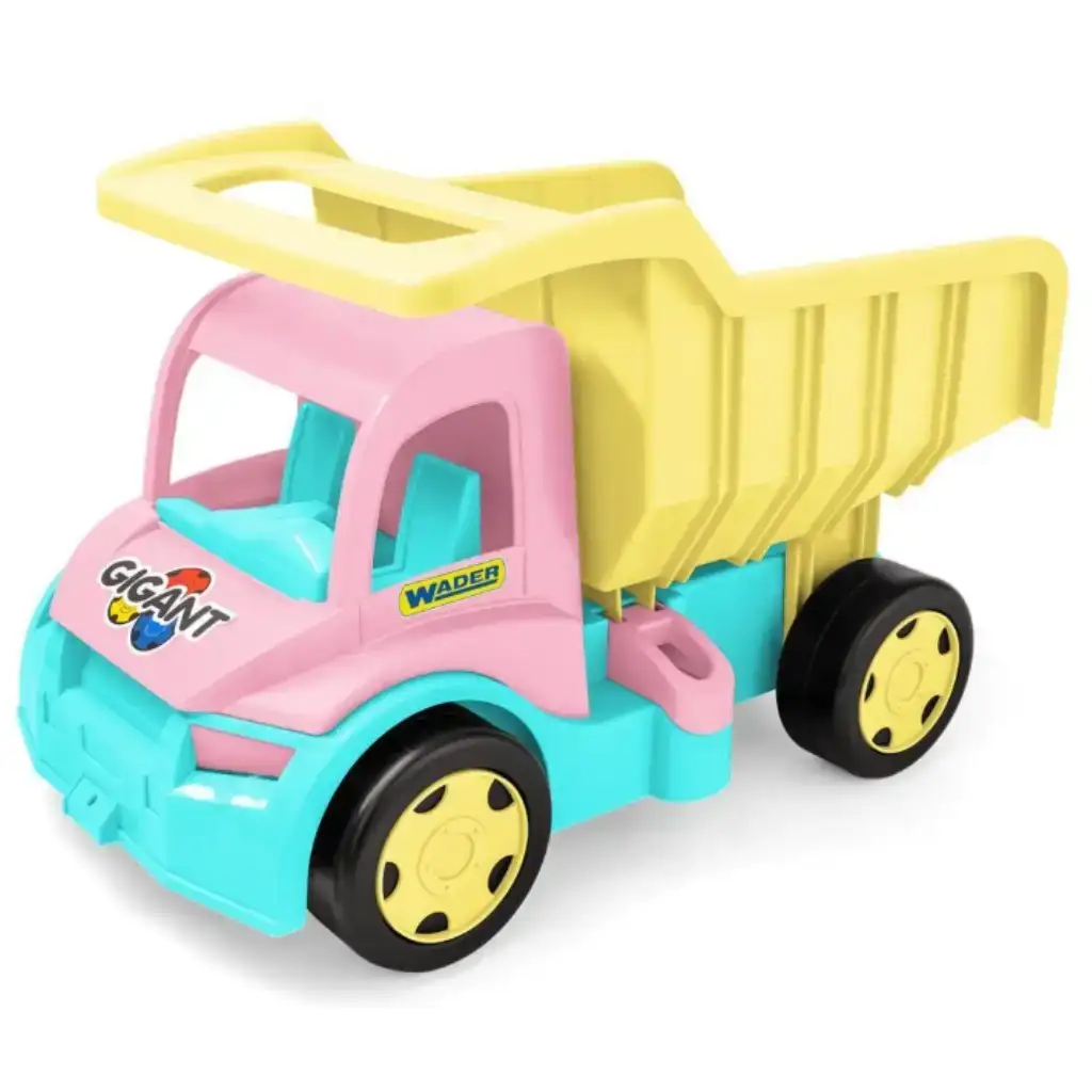 Il Wader Gigant camion gigante con la combinazione di colori rosa-giallo può essere il sogno di ogni bambina! Questo veicolo massiccio e dai colori vivaci non sarà solo la regina del parco giochi, ma anche un ottimo compagno per i giochi al chiuso. Grazie alla sua capacità di carico fino a 150 kg, è davvero resistente, inoltre il suo cassone ribaltabile aiuta a scaricare facilmente il carico. Le sue dimensioni sono perfette per il tuo bambino e il gioco aiuta a sviluppare la creatività e la motricità fine. Sorprendi il tuo bambino con esso e inizia il gioco spensierato!