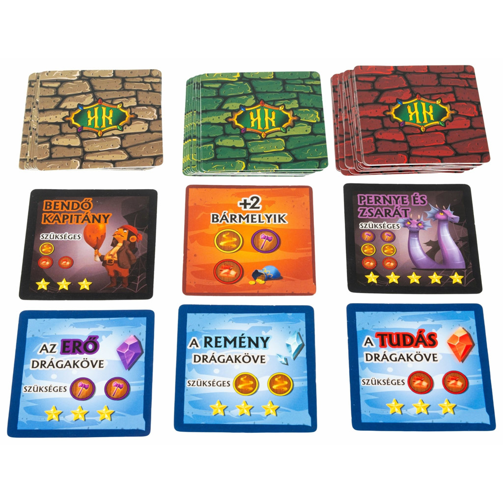Il gioco da tavolo Kölyökkalandok vi trasporta in un magico mondo fantasy, dove i bambini possono diventare dei veri eroi. Se cercate un gioco che non solo diverta ma sviluppi anche limmaginazione e la capacità di collaborazione dei bambini, questa è unottima scelta. Il tabellone splendidamente illustrato, le figure dei personaggi dettagliate e le carte colorate contribuiscono tutte a rendere lesperienza di gioco davvero coinvolgente.