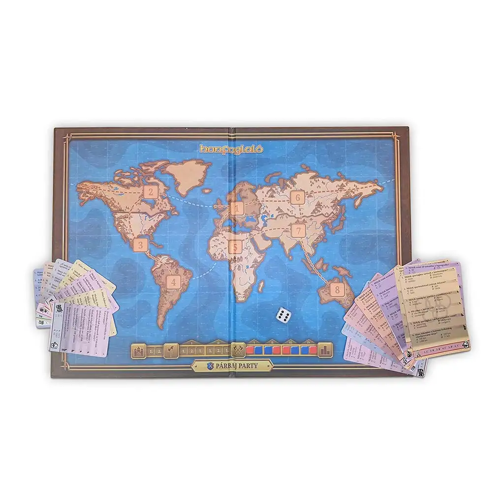 Il gioco da tavolo Honfoglaló è la versione da tavolo di uno dei quiz mobili più famosi e amati in Ungheria, ora disponibile per riunire tutta la famiglia e gli amici attorno a un tavolo. Se desideri che bambini e adulti riflettano insieme, creino strategie e si divertano ridendo, questo gioco è la scelta perfetta. I tabelloni spettacolari e la realizzazione di alta qualità creano subito l’atmosfera giusta all’apertura della scatola, ma l’esperienza vera la offrono le domande e le decisioni tattiche.