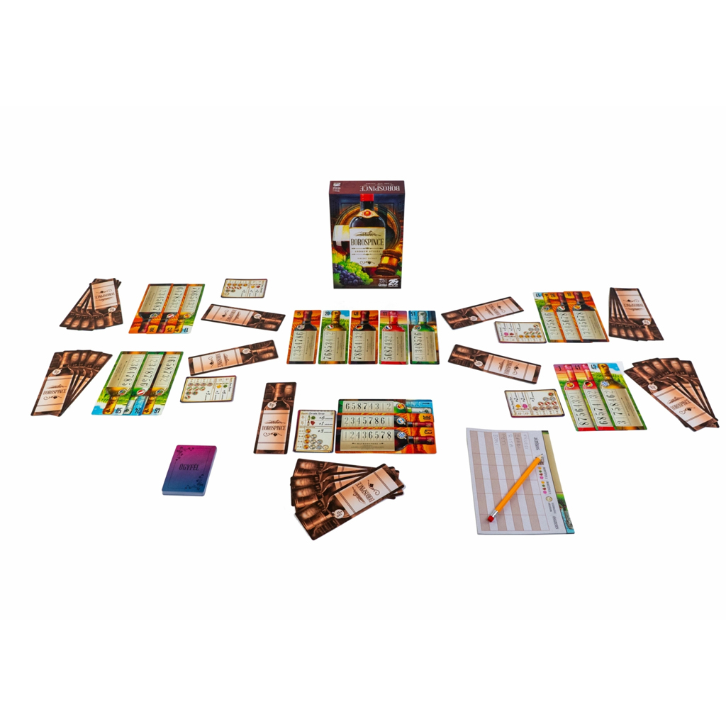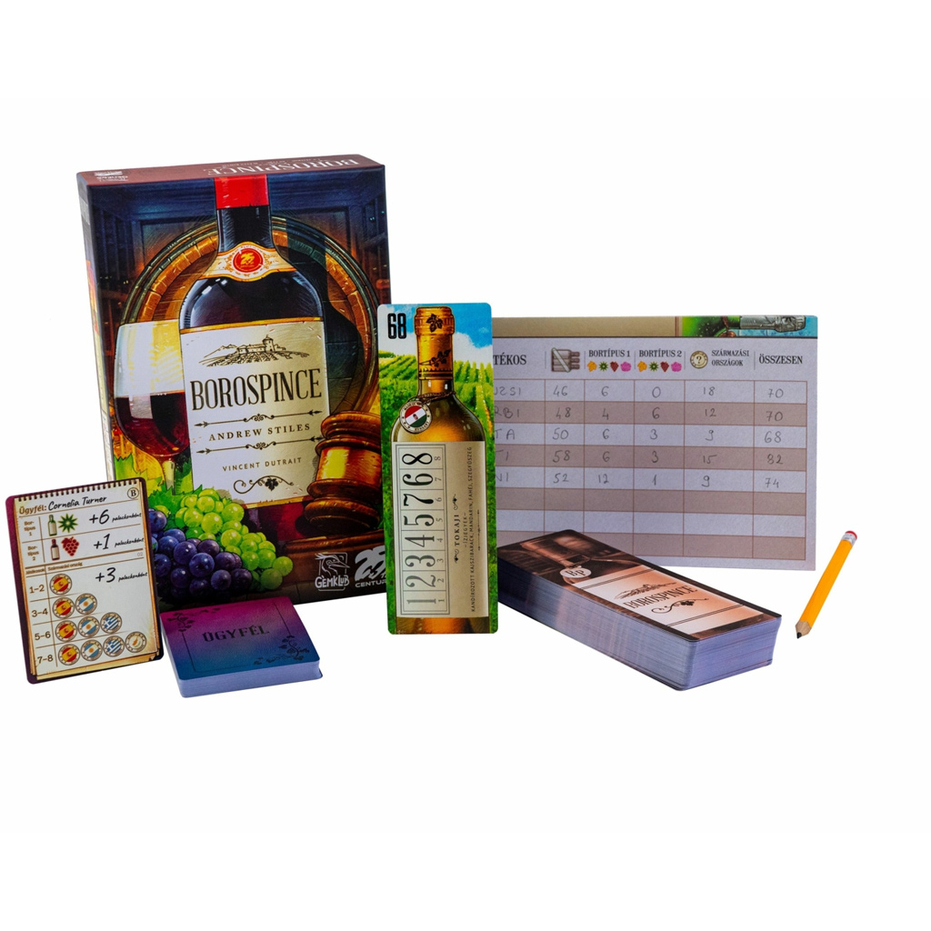 Il gioco da tavolo Borospince è un gioco di carte strategico dallatmosfera particolare, in cui insieme a tuo figlio potete costruire la vostra cantina di vini — ma non è indifferente in che ordine le bottiglie vengono collocate! Le splendide illustrazioni e il tema originale catturano immediatamente, mentre il gioco vi sottopone a continue decisioni. Dovrete contemporaneamente tenere docchio le aste, le mosse degli avversari e le esigenze dei clienti, rendendo ogni partita emozionante e varia.