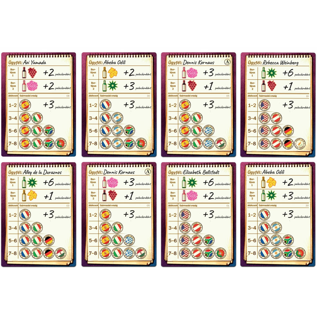 Nel conteggio punti non conta solo quali vini hai raccolto, ma anche quanto corrispondono alle aspettative riportate sulla tua carta cliente. Alcune regioni vinicole, colori o tipologie valgono punti extra, perciò conviene pianificare in anticipo e costruire la tua cantina con tattica. Alla fine della partita vince chi raccoglie il maggior numero di punti grazie a offerte ben temporizzate e a una cantina costruita con intelligenza.