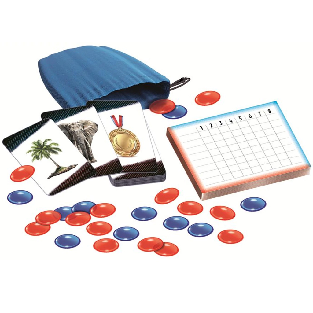 ricco contenuto di gioco (carte, gettoni, foglio per il punteggio)