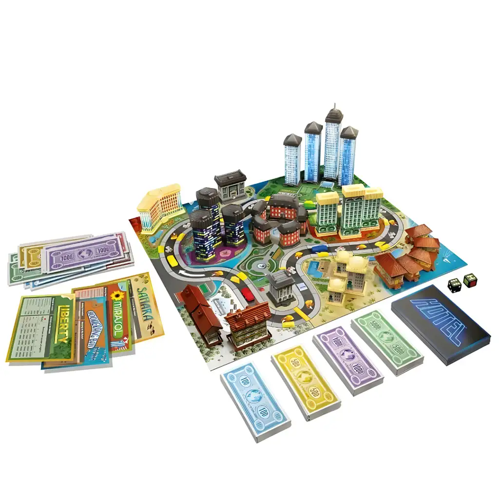 Il gioco da tavolo Hotel introduce i giocatori nel mondo competitivo degli imprenditori benestanti. In questo classico, ora disponibile in una nuova confezione, i partecipanti diventano i più ricchi investitori del mondo. Acquistano terreni, costruiscono hotel e parchi di divertimento, e competono con i rivali per ottenere il maggior profitto possibile.