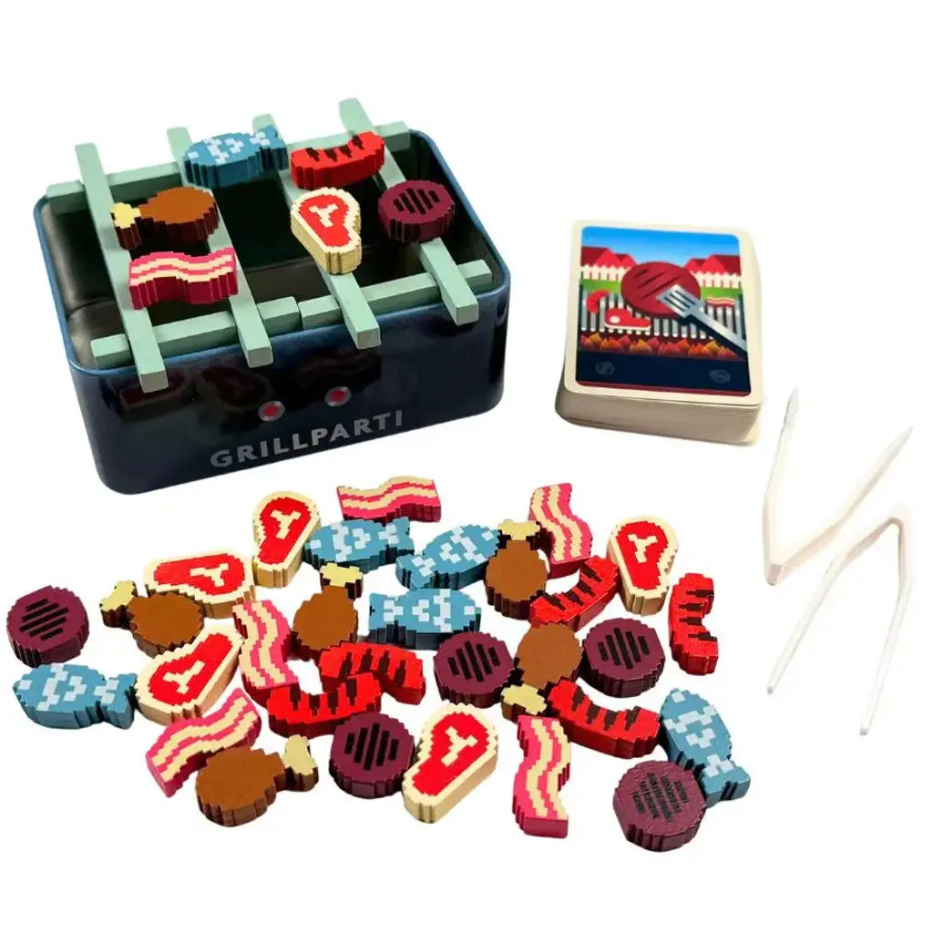 Immagina che fuori splenda il sole, gli uccelli cinguettino e la griglia in giardino sia già rovente: tutto è pronto per una grigliata perfetta! Il gioco da tavolo "Grillparti" porta questa esperienza sul tavolo, arricchendola di allegria e sfida. È un gioco di destrezza rapido, dinamico e divertente, in cui tutta la famiglia – grandi e piccoli – può divertirsi insieme.