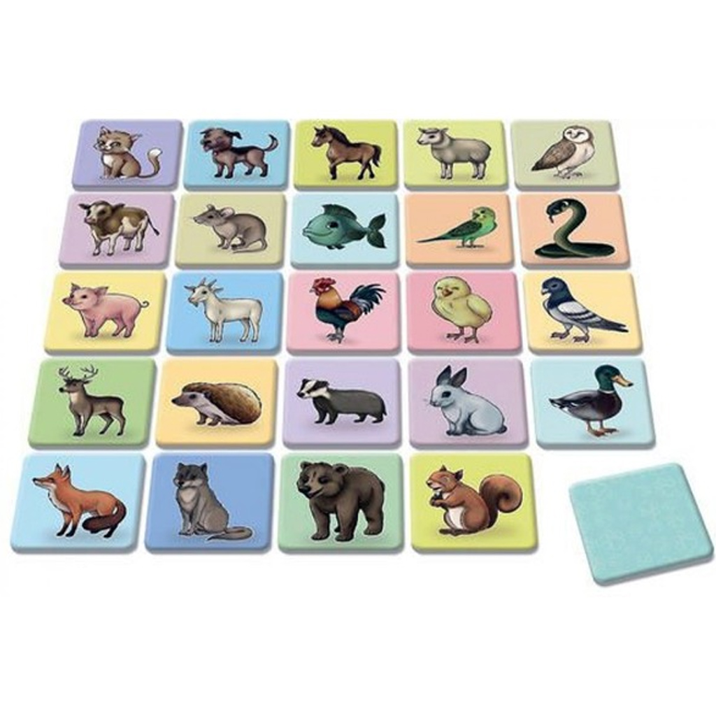 Il gioco di memoria degli animali è un gioco educativo intramontabile ma avvincente, che aiuta in modo giocoso lapprendimento e lo sviluppo del tuo bambino. Le carte allegre e colorate con animali catturano immediatamente lattenzione, mentre trovare le coppie rappresenta una vera sfida e regala una sensazione di successo. Durante il gioco il tuo bambino sviluppa senza accorgersene la memoria, la concentrazione e la capacità di osservazione, imparando anche a seguire le regole e ad aspettare con pazienza.