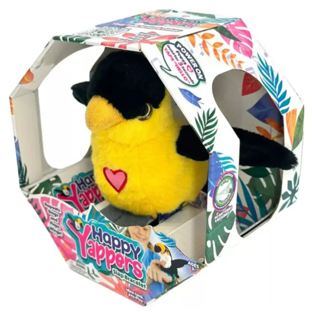 Il peluche interattivo Trupiál della serie Happy Yappers è un compagno allegro e divertente che renderà il tempo di gioco davvero speciale! Questo uccellino particolare non è solo carino e morbido, ma dispone anche di funzioni interattive che rendono il gioco ancora più entusiasmante. Basta fissarlo al polso con il cinturino slap-bracelet elastico e potrai portarlo ovunque con te. Premendo il cuoricino prende vita: ripete ciò che gli dici, emette suoni divertenti, sbatte le ali e può persino “parlare” con altre figure Happy Yappers. Così i bambini non ricevono solo un morbido peluche a forma di uccello, ma anche un amico interattivo sempre pronto a giocare. Trupiál, con i suoi vivaci colori giallo e nero, è davvero speciale, attira subito l’attenzione e rappresenta un regalo perfetto per tutti i bambini dai 3 anni in su.