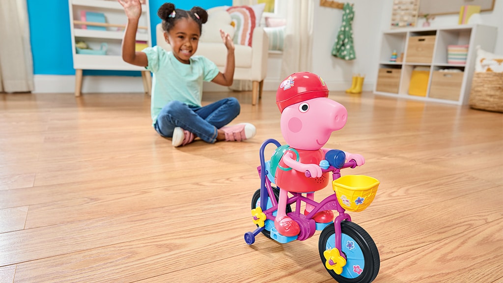 La popolare serie prescolare, Peppa malac, ha ispirato il gioco Ready, Pedal, Go Peppa, che aiuta i bambini dai 3 anni in su ad accompagnare Peppa mentre impara ad andare in bicicletta. Il gioco include una barra di spinta che sostiene i più piccoli durante le prime fasi del gioco; quando diventano più sicuri, la barra può essere rimossa e si può osservare la figura pedalare autonomamente. Questo gioco non è solo divertente, ma sviluppa anche la coordinazione motoria e l’autonomia, mentre i bambini possono giocare con i loro personaggi preferiti di Peppa malac. È una scelta ideale per ogni bambino che ama andare in bicicletta e Peppa Pig!