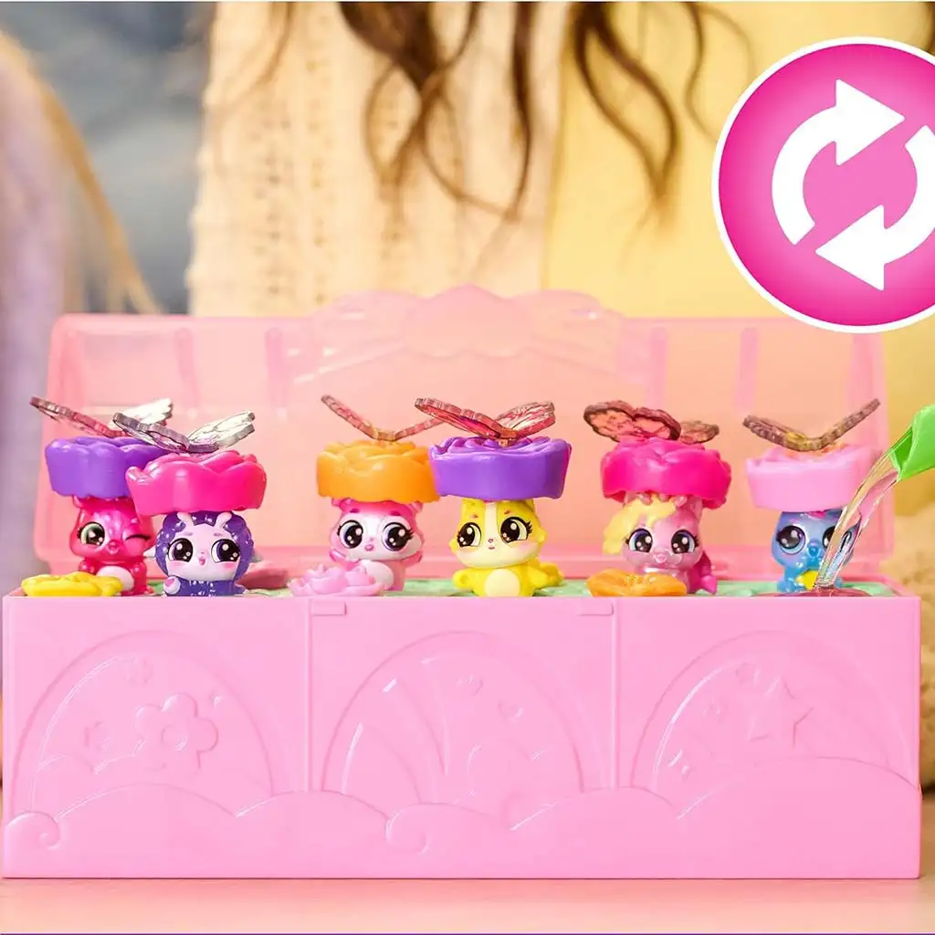 Il Bloom Bash multipack arriva in una pratica scatola portaoggetti rosa, che una volta aperta si trasforma in un vero e proprio spazio di gioco. Il set contiene 6 figure Bloomables, ognuna con colori, espressioni facciali e dettagli unici. I bambini possono ruotare, scambiare e disporre le figure, inventando le proprie storie nel magico mondo floreale degli Hatchimals. Gli elementi decorativi della scatola – fiori, accessori e piccoli dettagli – rendono il gioco ancora più fantasioso.