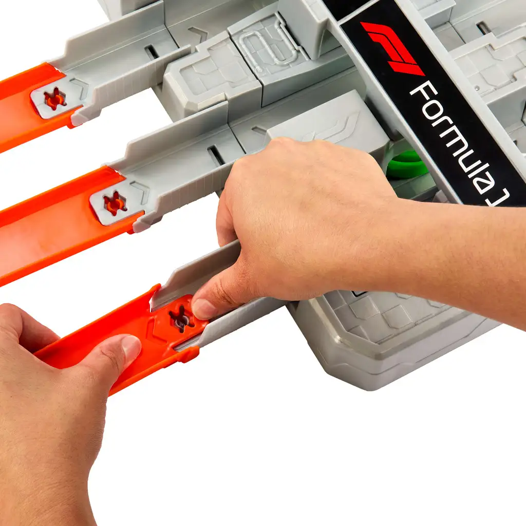 La pista è resa ancora più realistica da curve in salita entusiasmanti e da una corsia di sorpasso DRS attivabile dai bambini, che offre la possibilità di sorpassare in modo tattico. Al termine della gara, lauto vincitrice può essere posizionata sul podio per celebrare degnamente la vittoria.