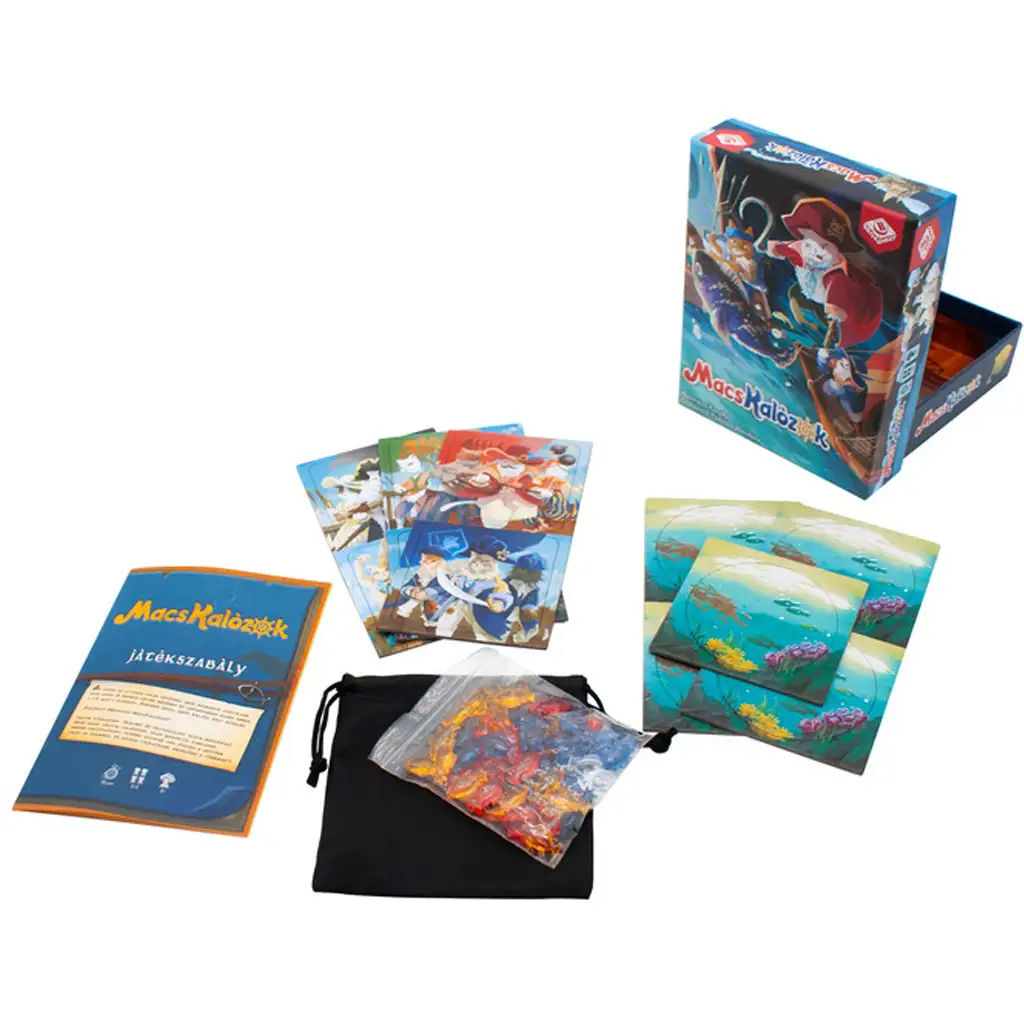 Questo gioco combina perfettamente le decisioni rapide e la strategia a lungo termine. In ogni turno dovrai agire con tattica: conviene agire subito per la grande cattura o è meglio aspettare ancora un po’? Ma attenzione! In qualsiasi momento il tuo avversario potrebbe mirare allo stesso bottino, e a quel punto solo la fortuna e la tua lungimiranza decideranno l’esito. Le regole semplici di “Gatti Pirati” si imparano velocemente, così anche i più piccoli potranno unirsi al divertimento, ma grazie alla sua profondità anche i più grandi non si annoieranno mai.