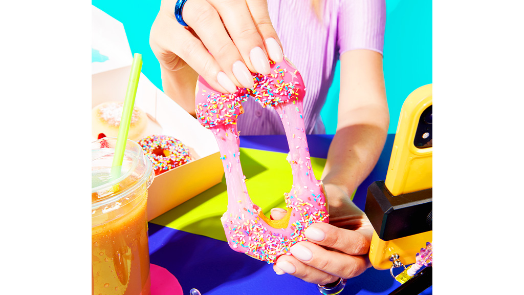 Nel caffè, i fan possono creare le proprie ciambelle slime, che poi possono allungare e modellare davanti alle telecamere. È un'esperienza divertente e creativa che tutti possono provare.