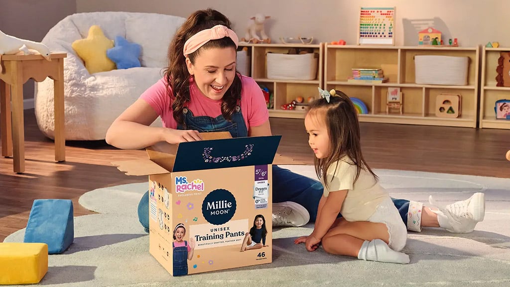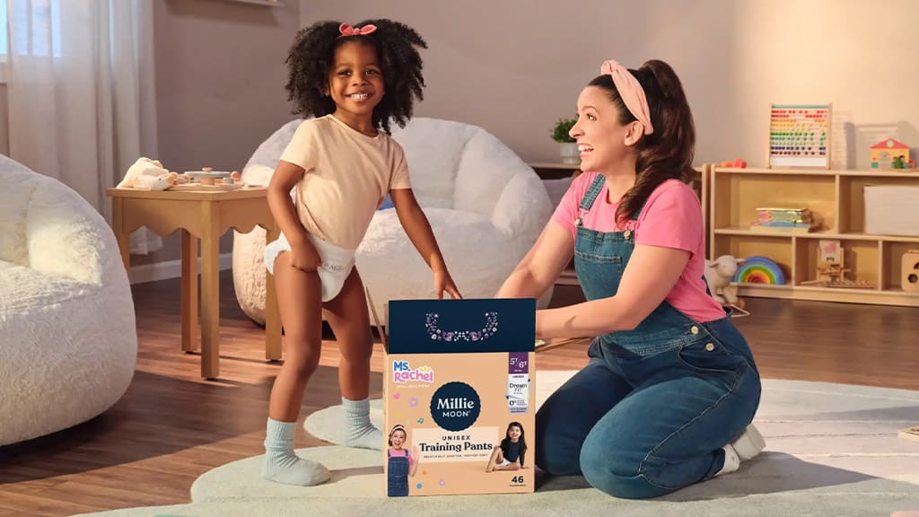 Ms. Rachel ha aiutato famiglie in tutto il mondo a superare le sfide dell’educazione alla pulizia dei bambini. Ora la maestra preferita dai fan collabora con il marchio Millie Moon per creare una nuova collezione di pannolini mutandina per l’apprendimento, così Ms. Rachel può essere presente ad ogni passo nel percorso verso la pulizia dei più piccoli.