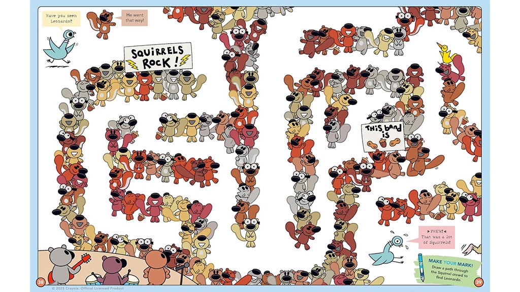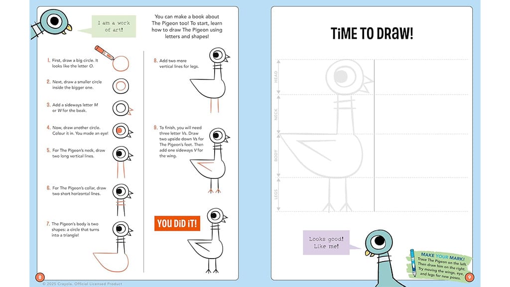 Il libro offre più di 100 attività entusiasmanti per i bambini, tra cui imparare a disegnare, orientarsi in un labirinto di scoiattoli, risolvere enigmi e colorare pagine in stile fumetto. Ogni pagina incoraggia i bambini a esprimersi in modi nuovi, ad esempio scrivendo, cucinando, ballando o creando le proprie opere d’arte. Il libro include 50 adesivi e anche un poster removibile che i bambini possono colorare e appendere nella loro stanza. I pennarelli Crayola a doppia punta inclusi nel set hanno la stessa gamma di colori utilizzata da Willems per i suoi personaggi. Questo libro non solo è divertente, ma sviluppa anche la creatività, l’espressione personale e le capacità di problem solving, intrattenendo i bambini per ore.