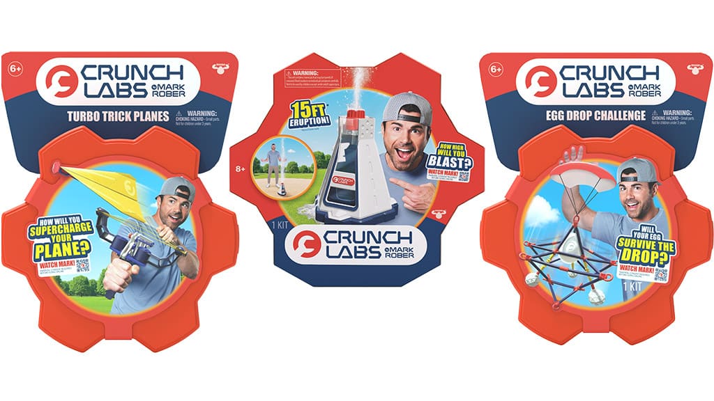 Dalle bombe di glitter agli spettacolari lanci di uova, questa gamma di prodotti offre le versioni da provare anche a casa degli esperimenti più popolari e virali su YouTube di Mark Rober. Ogni singolo gioco incoraggia i bambini a pensare in modo critico, risolvere problemi e creare con sicurezza. Questi giochi saranno disponibili nei negozi in autunno.