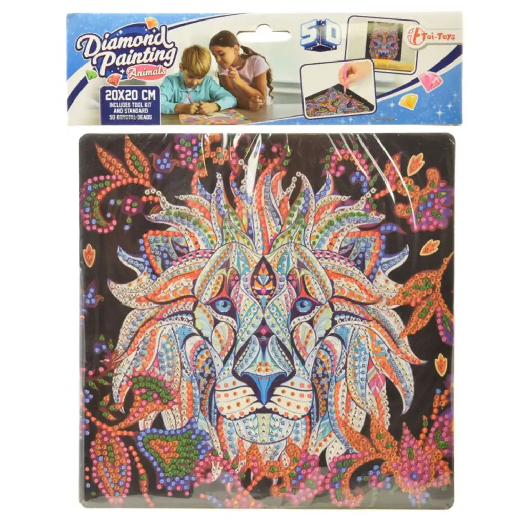 Immergiti nel mondo della creatività con questo affascinante set di pittura diamantata "Leone", che non solo offre un passatempo divertente, ma assicura anche un risultato davvero spettacolare! Su un quadro da 20x20 cm compare il volto di un leone dai colori vivaci e dal motivo decorativo, da realizzare con perline di cristallo colorate – il risultato finale sarà un’opera d’arte brillante con effetto 5D.