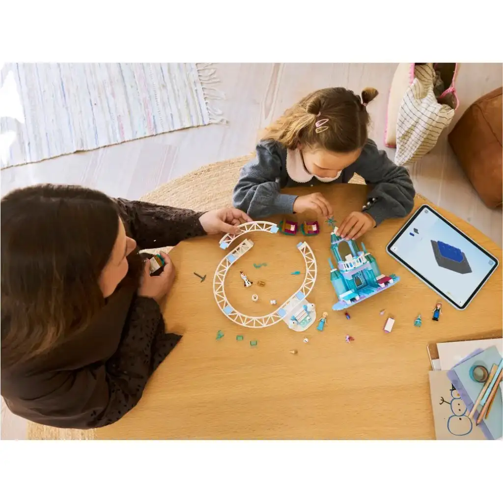 Regala ai bambini dai 4 anni in su questo set da costruzione LEGO® ǀ Disney Frozen Il Castello di Ghiaccio di Elsa e le Avventure sulla Slitta (43281)! Incoraggia il gioco creativo con 7 personaggi LEGO ǀ Disney Frozen: Elsa, Anna, Olaf, Bruni e 3 pupazzi di neve, oltre a un castello su due livelli che include una sala del trono, un balcone, 2 letti e una cucina. Il set comprende anche una pista separata con scale, 3 slitte su cui possono viaggiare tutte le minifigure incluse nel set. Nutri la passione dei bambini per Frozen della Disney con un castello che è unidea regalo divertente sia per bambine che per bambini e compatibile con altri set da costruzione LEGO ǀ Disney (venduti separatamente)! 5 mattoncini starter aiutano i bambini a iniziare in modo stabile, e in ogni sacchetto cè un modello da costruire e un personaggio, così il gioco può iniziare subito. Oltre alle semplici istruzioni illustrate per bambini che stanno imparando a leggere, nell’app LEGO Builder i bambini possono vivere un’avventura di costruzione semplice e intuitiva, dove possono ingrandire e ruotare i modelli con istruzioni 3D, oltre a salvare e monitorare i loro progressi. Il set contiene 216 pezzi.