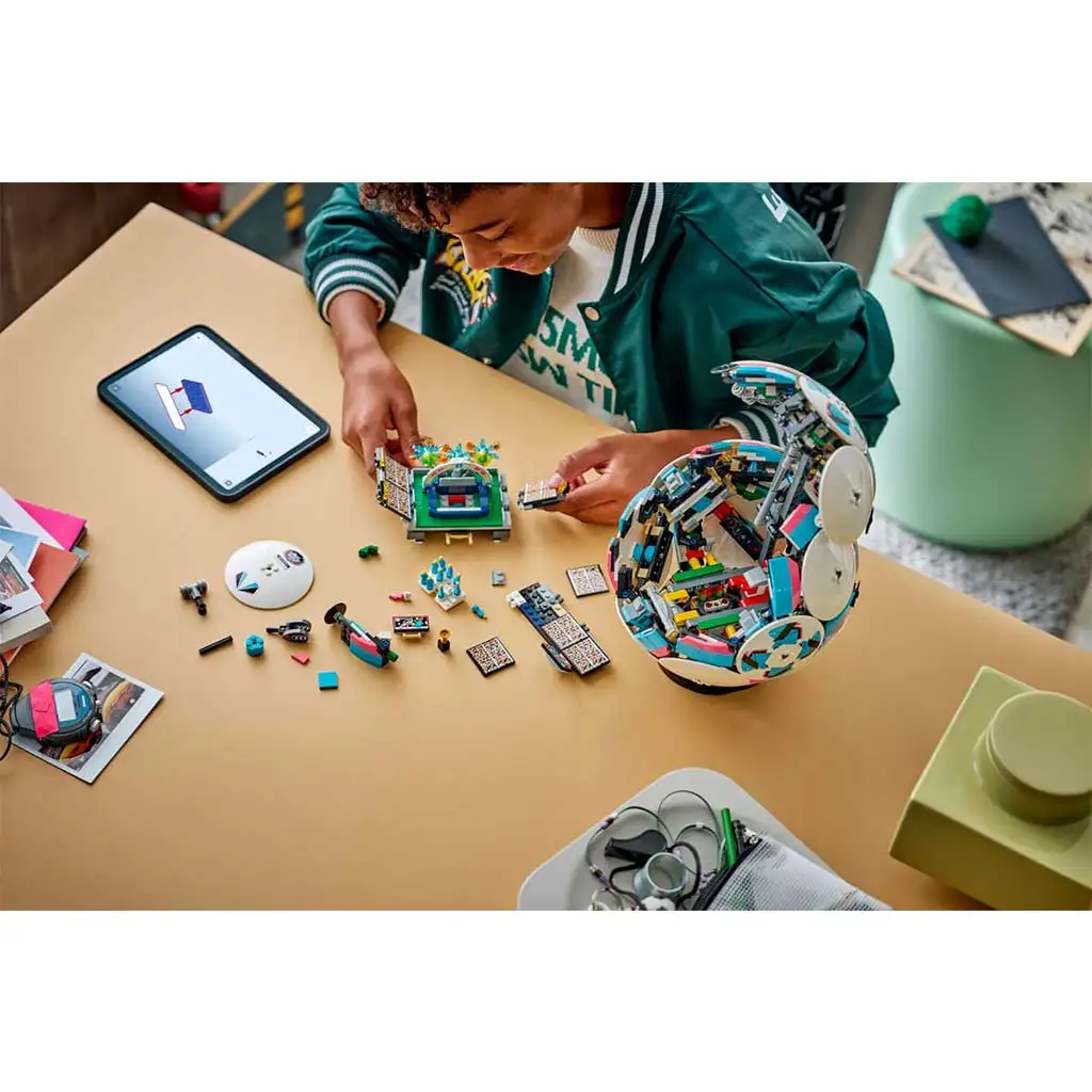 • SET SPORTIVO LEGO® – All’interno del pallone c’è una mini-scena dello stadio in movimento che celebra la vittoria; i bambini possono premere il pulsante e vedere i calciatori festeggiare con fuochi d’artificio