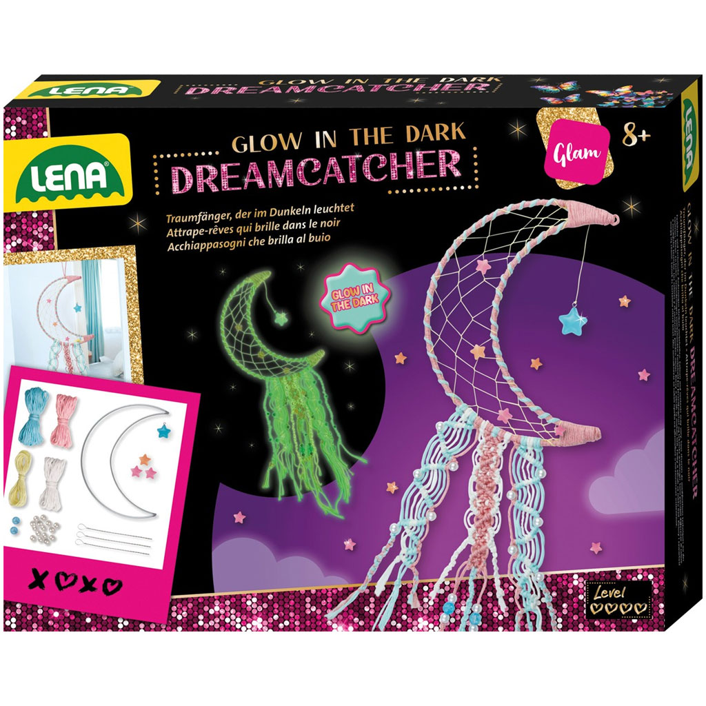 Il set creativo LENA per realizzare un acchiappasogni che si illumina al buio è un gioco creativo speciale che offre ai bambini la possibilità di creare una decorazione personale e unica, che brilla anche al buio. È la scelta perfetta per chi ama creare e impreziosire la propria stanza con decorazioni suggestive.